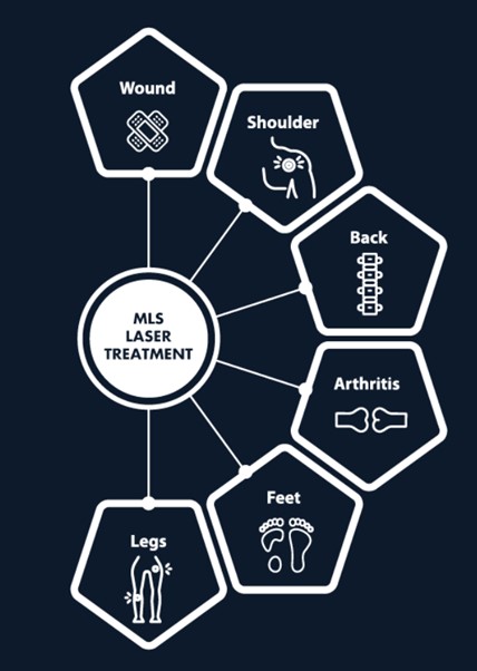 MLS® offers significant advantages over other treatment methods. This includes the faster and better healing of injuries such as sprains, strains and inflammatory conditions that are otherwise difficult to treat or require a long recovery. The treatment is also highly effective post-surgery to help promote faster healing and a better patient experience during recovery.